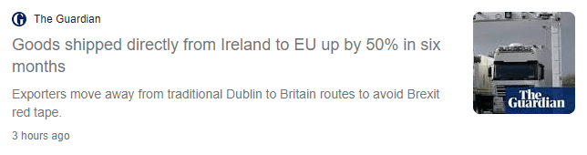 Separately, all economic indicators are that, already, the Protocol is good economic news for N Ireland (this tends to happen when you have privileged access to 2 major markets on your doorstep, when all your neighbours only have access to 1 market):