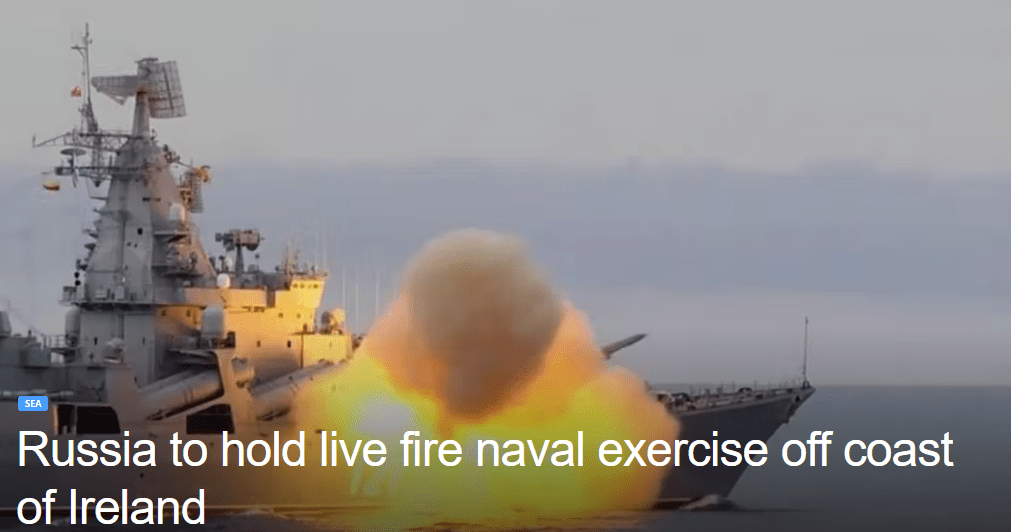 Off its chain, alright. A mere 5 years later, as 100,000 Russian troops mass on the border with Ukraine and as Russian warships conduct <live missile testing off the Southern Irish coast>, suddenly, there’s the beginnings of a new rapprochment, as even the navel-gazing Brexiters begin dimly to realise the pampered, first-world-problem type idiocy of pouting and posturing about something as utterly inconsequential as the Brexit Protocol (which affords N. Ireland access both to the EU and GB markets) while Russian warships menace the Irish coastline: